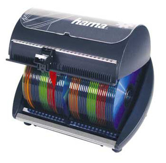 - Space-saving storage system in exclusiv design to hold 50 CD-ROMs/DVD-ROMs ,- Incl. patented sorting system with innovative Magic Touch opening: When the box is closed adjust disc-selector button to the desired title, press disc selection bar and the box opens automatically with your desired disc ,- Incl. index card which can be personalized with a variety of designs, available online at www.hama.de ,- Incl. CD-ROM pen for inscriptions