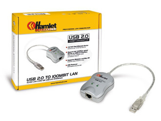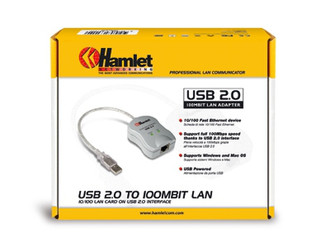 Hamlet USB to 100Mbit LAN external adapter can upgrade any computer to Fast Ethernet communication with a simple Plug & Play installation through USB port. This device is compatible with notebook and desktop PC. It is 10/100Mbps capable of automatic speed recognition. No external power needed. USB Bus powered.
