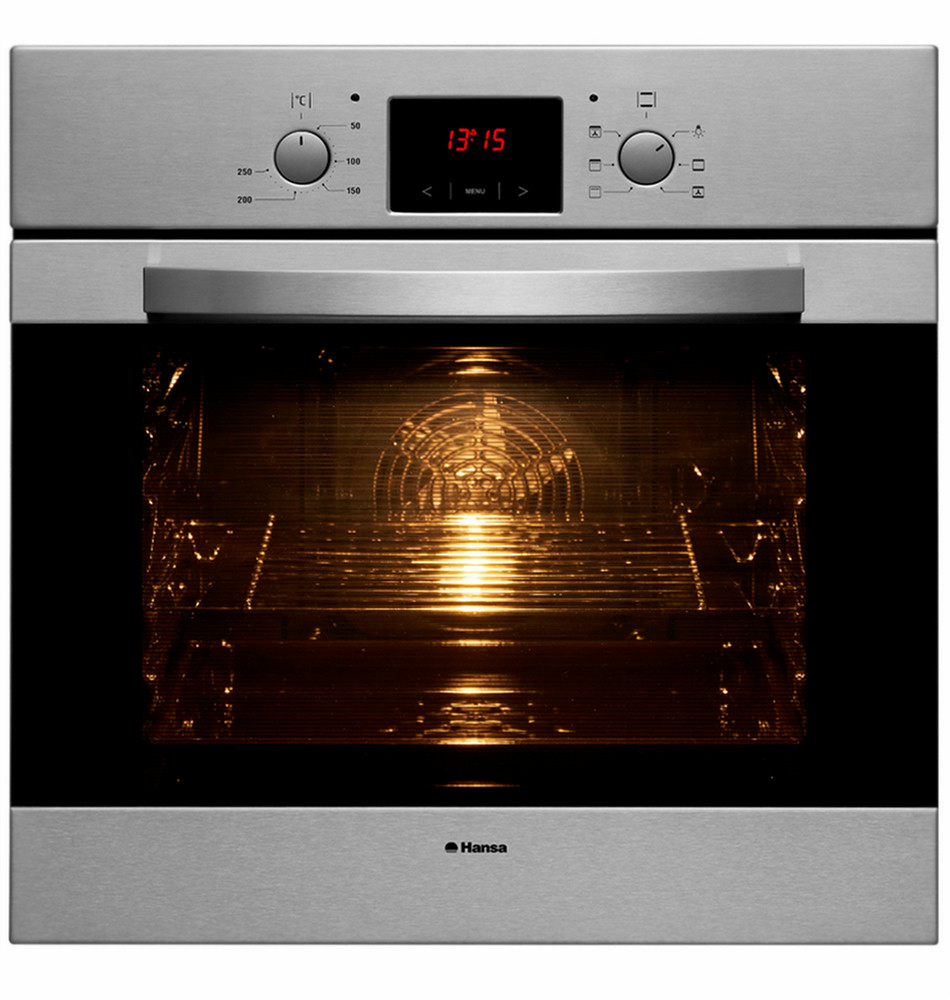 Hansa BOEI64030030. Oven type: Electric oven, Total oven(s) interior capacity: 66 L, Total oven power: 2900 W. Colour of product: Black, Stainless steel, Control type: Rotary, Control position: Front. Energy efficiency class: A-20%, Connected load: 2900 W. Width: 595 mm, Depth: 575 mm, Height: 595 mm
