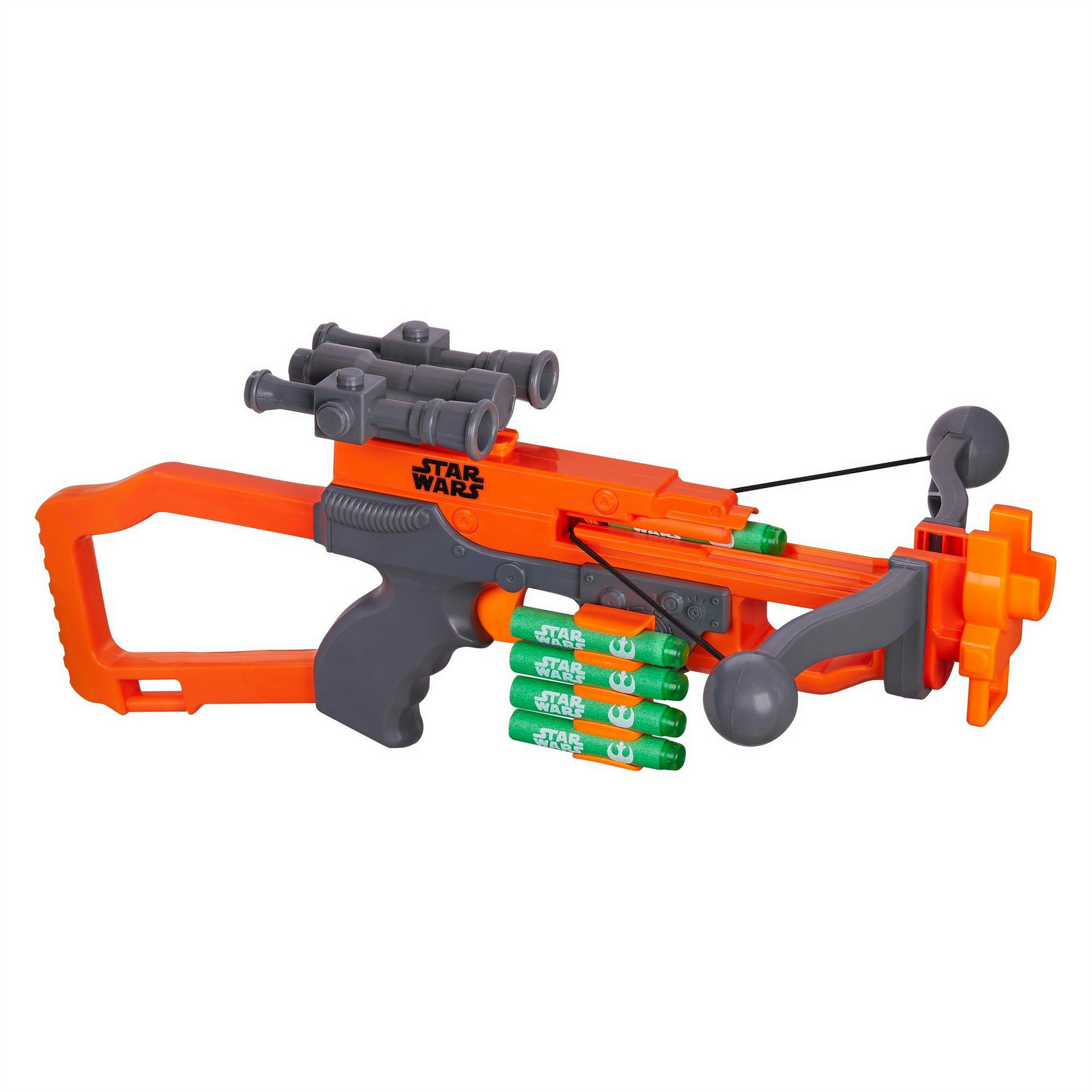 Launch into exciting Star Wars adventures with the Nerf Chewbacca Bowcaster blaster! Fight the First Order like the Wookiee hero Chewbacca with this dart-firing bowcaster. Experience real crossbow action with this bowcaster designed to look like the iconic bowcaster used by Chewbacca. Pull the string back, load a dart, and pull the trigger to launch the dart up to 65 feet (20 meters). The bowcaster has a removable scope that attaches to the tactical rail. Includes 5 foam darts. Store darts on the bowcaster for fast reloading.
