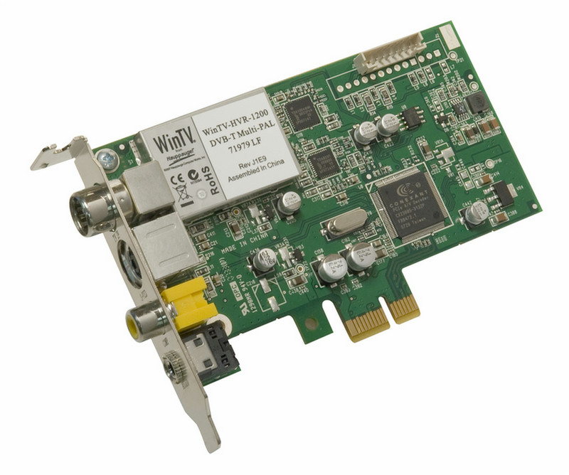 Hauppauge WinTV-HVR-1200 HD. TV tuner type: Analog, DVB-T. Audio formats supported: AAC,MP3, Image formats supported: JPG. Interface type: PCI Express. Minimum processor: 1.5 GHz. Compatible operating systems: Windows XP/Vista/7, Language version: German