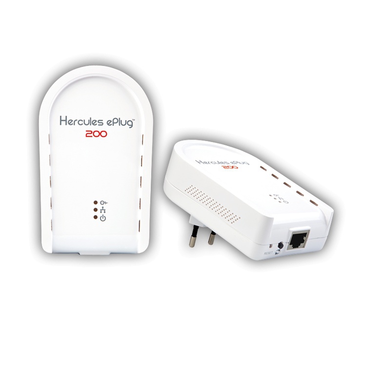 Hercules ePlug 200C Duo. Connectivity technology: Wired, Host interface: PowerPlug, Interface: Ethernet. Data transfer rate (max): 200 Mbit/s. Colour of product: White