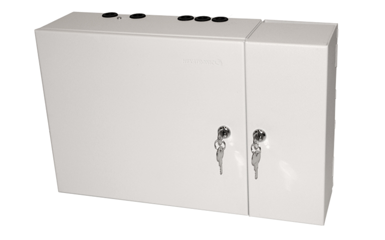 The basic cabinet comes complete with 24 SC-duplex cutout panel (excluding adapters), 4 fiber organizers and a lockable side door to protect the fiber distribution patch/drop side.