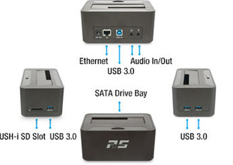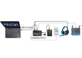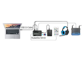 The RocketStor 5411D is more than just a simple USB drive dock - it is a complete, USB 3.0 I/O connectivity solution! Manage all of your USB peripherals, SD memory cards, audio devices and storage from a single, compact docking station!
