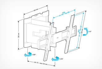 Holder LEDS-7024. Maximum weight capacity: 45 kg, Minimum screen size compatibility: 81.3 cm (32"), Maximum screen size compatibility: 165.1 cm (65"). Tilt angle: -10 - 10°, Rotation: 180°, Distance to the wall (max): 41.6 cm. Colour of product: Black, Material: ABS synthetics, Metal. Thickness: 3 mm. Package type: Box
