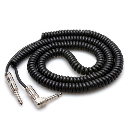 Coiled Guitar Cable, 1x 6.3 mm Straight - 1x 6.3mm Right-angle, 25ft This cable is designed to connect an electric guitar to a signal chain or amplifier. A coiled guitar cable is essential for the psychedelic tones of the ’60s guitar experience.
