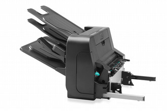 Increase output capacity and improve workflow with the HP 900-sheet 3-bin Stapling Mailbox.
