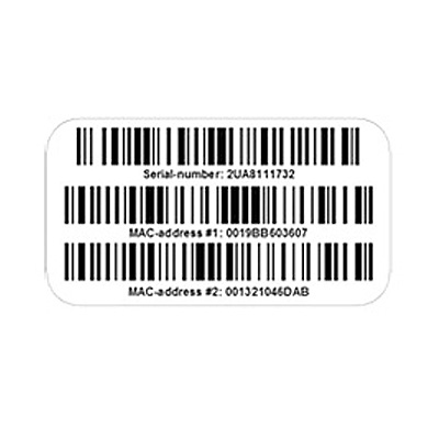 - Uses HP standard labeling materials artwork layout and HP default placement