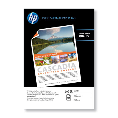 HP Professional Matt Laser Paper 160 gsm-150 sht/A4/210 x 297 mm This heavyweight matt laser paper features a smooth two-sided finish for crisp black text and rich, bright colours. Its 160 g/m² weight and high brightness make it ideal for in-house printing of professional-quality marketing materials.