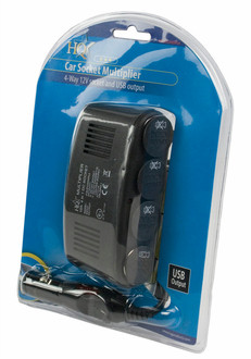 Create 4 extra 12 V connections for devices which can be powered via the car cigarette lighter. Besides the 3 normal 12 V connections this splitter has a USB connection and a 12 V lighter socket.