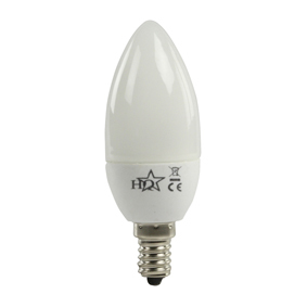 Candle E14 5W warm white energy saving lamp with a light efficiency reaching B class and has a life span of minimum 10000Hours.