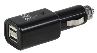Universal dual USB carcharger. With the dual USB output connection it’s possible to charge two USB devices at the same time. Ideal to charge devices like MP3 players, iPods, or PDAs. The adapter incorporates safety features such as short-circuit protection and automatic overload cutoff.