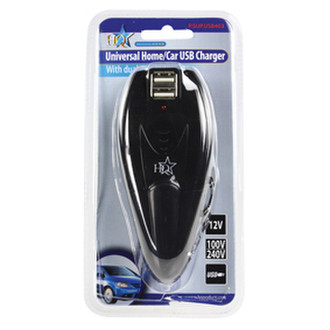 Universal USB charger which can be used in a car and at home. Ideal for charging USB devices such as MP3 players, TomTom and PDA`s via the cigarettelighter in a car or a wallsocket at home. With the dual USB output it`s even possible to charge two devices at the same time. The charger incorporates safety features like short-circuit protection and automatic overload cutoff.