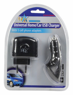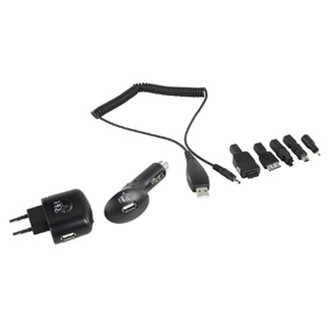 Universal USB charger, ideal for charging USB devices such as MP3 players, TomTom and PDAs via the cigarettelighter in a car or a wallsocket at home. The charger incorporates safety features like short-circuit protection and automatic overload cutoff. Includes 5 populair adapters to charge your cell phone.