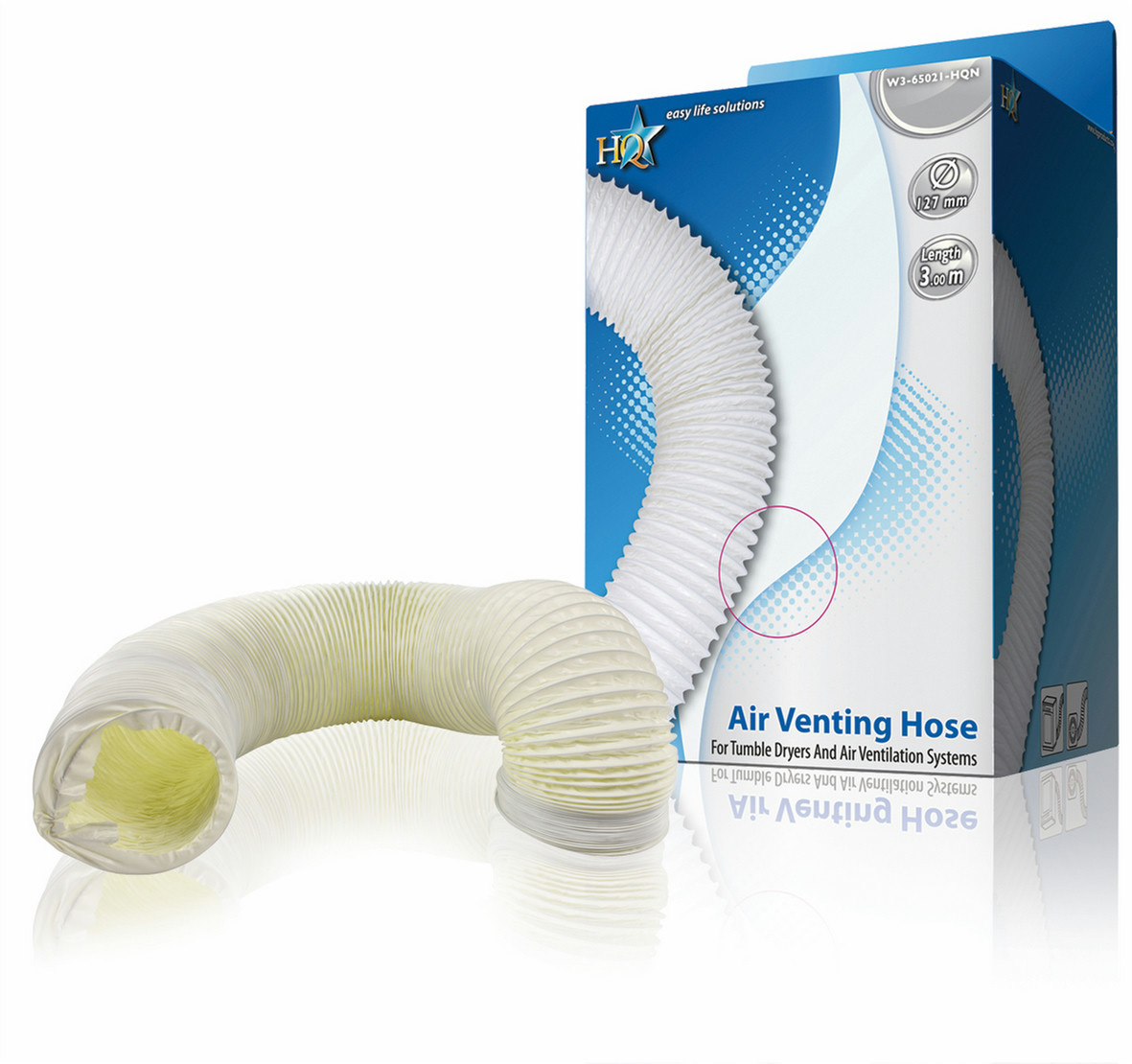 Air outlet hose 127 mm PVC 3.00 m This PVC air venting hose for tumble dryers and air ventilation systems in toilet, bathroom and living room, allow steam to exit your tuble dryer. This flexible hose has a 127 mm diameter and extends to 3.00 meter long