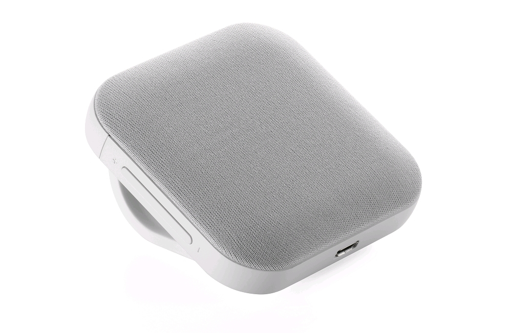 It has two microphones for better voice clarity, noise cancellation to reduce background sounds and a loud speaker. It also has text-to-speech ability. On the sides of the device are the power, mute answer/end and volume buttons.