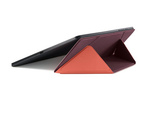 The Magic cover is a magnetic attachment cover that can be attached to the front or back of the tablet and the cover can fold into two stand positions, the upright position for viewing and low or lying position for typing.
