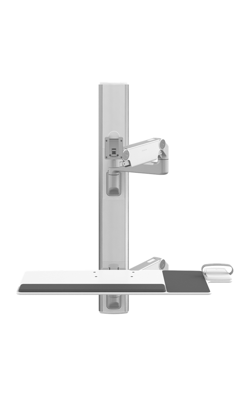 The V6 offers numerous monitor and keyboard arm lengths for ultimate versatility. It can be configured with an accessory mount or rail to support peripheral shelves and mounts for gloves, wipes and other common items.