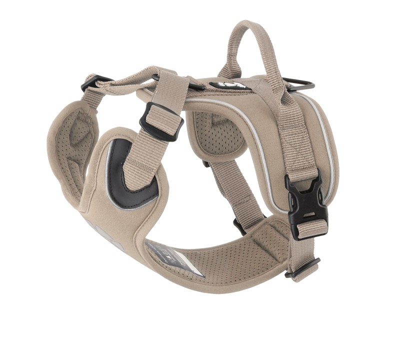 Sturdy, padded harness for dogs on the move. Easy to dress, comfortable to wear. The adjustable collar and chest strap ensure a comfortable fit. Efficient 3M reflectors improve visibility in the dark. The back is equipped with a handle for better control of your dog in difficult places.