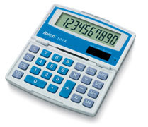 Ibico Zakrekenmachine 101X. Form factor: Desktop, Type: Basic calculator, Colour of product: Blue, White. Control type: Buttons. Digit comma separator: Floating. Width: 110 mm, Depth: 131 mm, Height: 15 mm