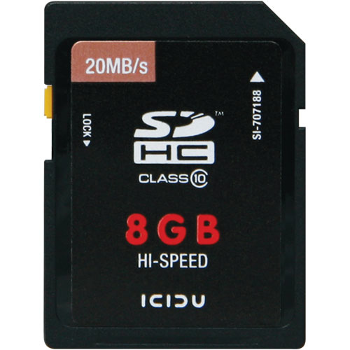 Create it... Store it... Share it, with an ICIDU Hi-Speed SDHC Card. Save image, sound and data files on compatible devices such as professional DSLRs, digital cameras, camcorders, and MP3 players.