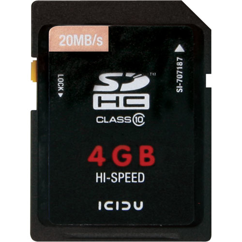 Create it... Store it... Share it, with an ICIDU Hi-Speed SDHC Card. Save image, sound and data files on compatible devices such as professional DSLRs, digital cameras, camcorders, and MP3 players.