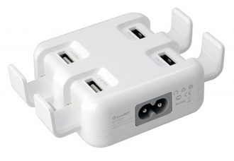 Universal charger with 4 USB ports. Smart IC technology automatically detects your device to deliver its fastest possible charge speed up to 2.4 amps per port or 5.4 amps overall.