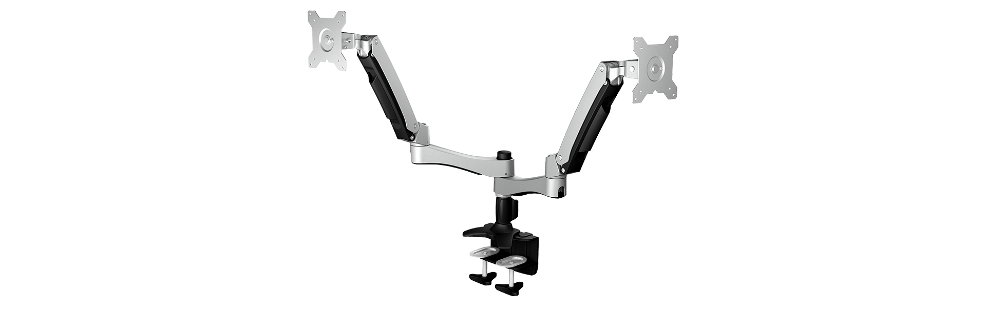 Full metall holder, for two screens size up to 24" with a desk mounted base