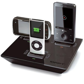 DAPT I4 is an innovative charging solution that can charge up to 4 mobile devices simultaneously and is compatible with over 4,500 mobile electronic devices including the iPhone, iPad, Blackberry, Nintendo DS, PSP, GPS systems, digital cameras, and Bluetooth products. The IDAPT i4 features an interchangeable tip system making it completely customizable. It has 3 charging points and an additional USB charging point, allowing users to charge their electronics without the mess of tangled cords or the need for more than one outlet.