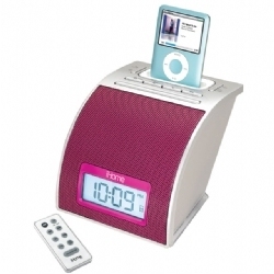 This stylish iPod alarm clock is great for any place where space is limited. Wake and Sleep to your favorite music. A great gift that also includes a full function remote control.