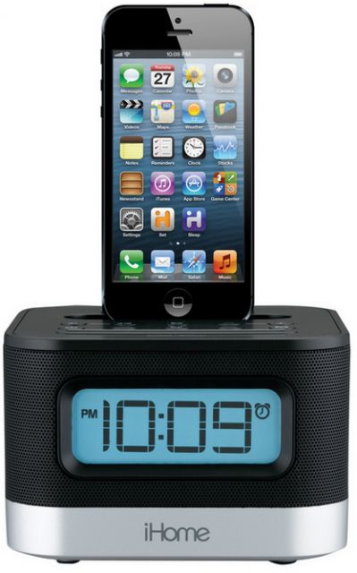 Dual Charging Stereo FM Clock Radio with Lightning Dock and USB Charge/Play for iPhone or iPod Whether you have the latest iPhone 5 or less recent iOS devices, we've got you covered. Charge and play via flexible Lightning dock or USB port (with your own cable). The iPL10 is a great looking, space-saving speaker system for listening to all your music.