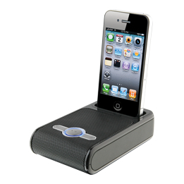 Play and charge iPod and iPhone in style with this portable speaker system. Connect audio devices to the audio input. A dynamic speaker makes your music come to life. Download our free app for enhanced features, including: custom clock, weather display, custom alarm settings, nature sounds, photo slideshows with background music, and more.