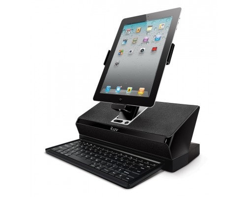 The WorkStation™ is one solution that extends the multi-functionality of the iPad / iPhone / iPod by serving as both a workstation for productivity and a sophisticated audio system for entertainment. Its tilting and rotating bracket provides greater viewing options; vertical for reading documents and horizontal for a more traditional typing orientation. The keyboard slides out and conveniently tucks away when not in use. Its laptop style keys enable you to type emails or web search with speed and ease. The iMM737 is your Mobile Computing WorkStation™ for Work and Play.