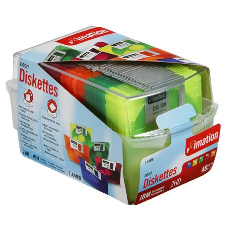 Imation 3.5" DS-HD IBM PC Formatted Neon Diskettes 40pk Tub
