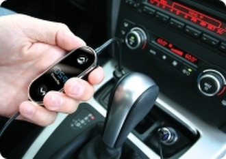 InCharge FM is easy to use. Simply tune your FM stereo to a clear station, tune InCharge FM to the same station and push play on your iPod — your tunes will play wirelessly over your FM stereo. The easy-to-read display and large buttons allow you to tune easily, and the two programmable presets allow you to save the best stations for easy recall. It also includes a convenient play/pause/next track button so you can easily pause the iPod with a single touch of a button, or advance to the next song by pressing the button twice.