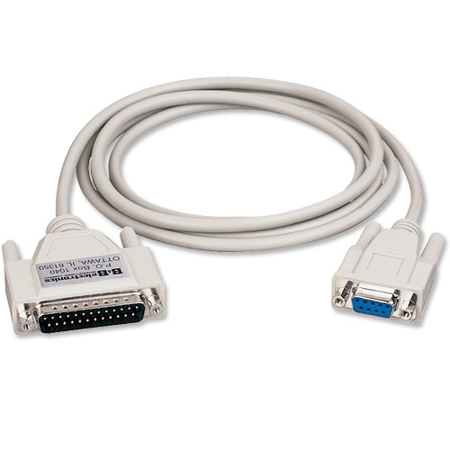DB9 TO DB25 MODEM CABLE - C9-wire, all pins terminated, DB9 female connector on one end, DB25 male connector on the other end - PC-AT modem cable