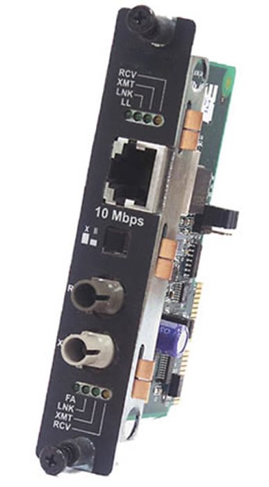 Modular iMcV-LIM SNMP-manageable media converters deliver a value priced conversion solution, up to Fast Ethernet speeds. iMcV-LIM series converters are ideal in all premises LAN, fiber distance extension and service provider applications. For example, LAN managers can use these converters to interconnect workgroup switches over fiber optics. Service providers can deploy iMcV-LIM converters back-to-back to provide high-speed data connections to business customers.