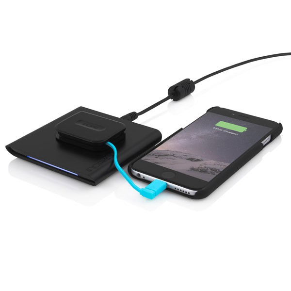 Take wireless charging mobile with the Incipio GHOST Wireless Charging Adapter featuring a built-in Lightning connector and cable. Plug your device into the GHOST Wireless Charging Adapter and place on a Qi or PMA charging base to experience drop and charge functionality. With a unique cable design the adapter can work with either tabletop or charging pad surfaces and be quickly put away for enhanced portability.