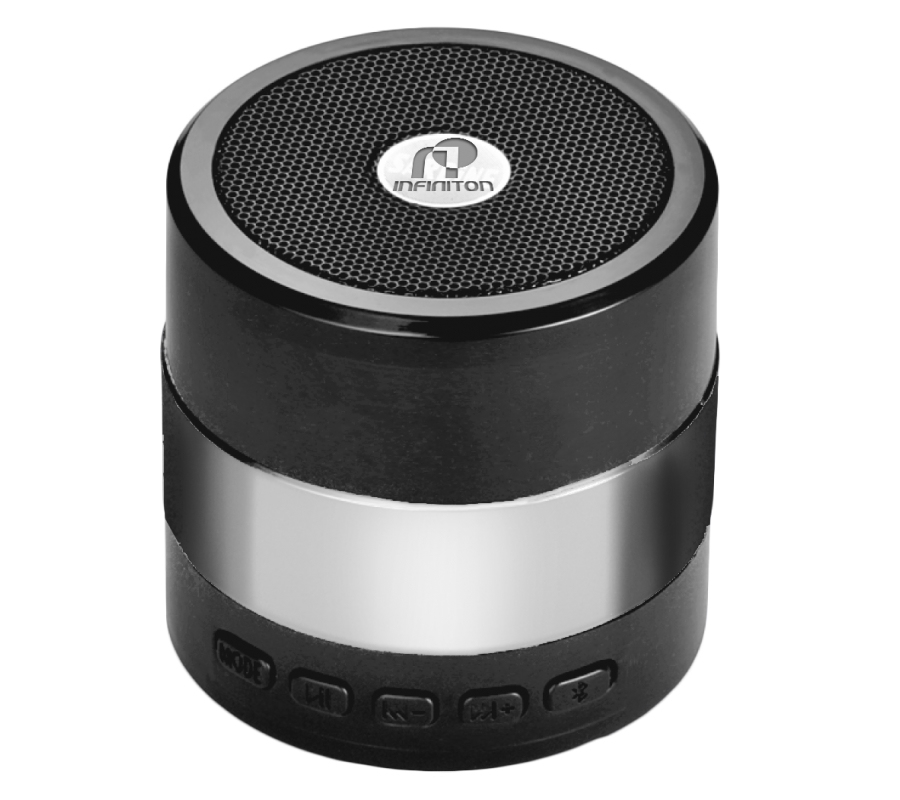 Infiniton F-3098. Audio output channels: 1.0 channels, Speaker type: 1-way. Connectivity technology: Wireless, Interface: Bluetooth, Bluetooth profiles: HFP. Product type: Mono portable speaker, Colour of product: Black, Platinum, Volume control: Digital. Recommended usage: Universal, Compatible memory cards: MicroSD (TransFlash), Audio formats supported: MP3. Power source type: Battery
