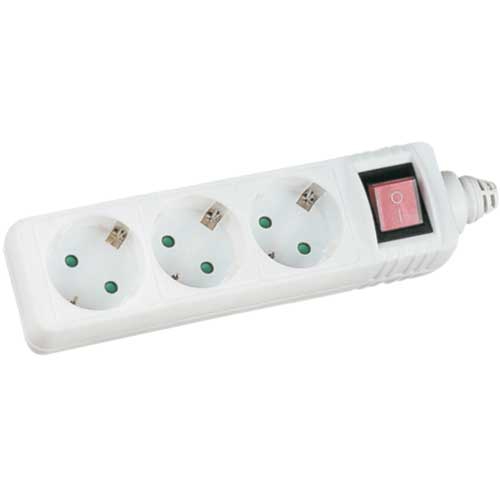 Power strip, white, 3-fold, with power-switch, 3m supply cable, with children protection