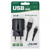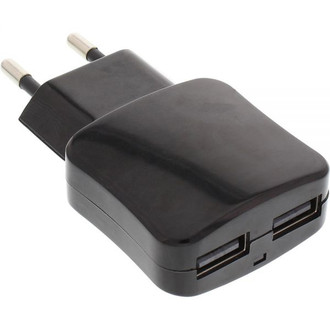 USB DUO+ charging set, 2-port power adaptor with 2m cable, 100-240VAC to 5V/2.1A, black
