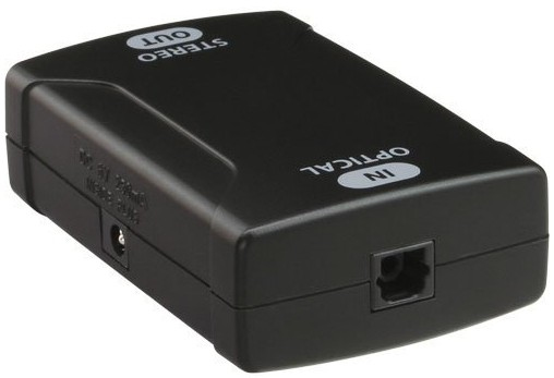 - Converts TOSLINK digital optical audio to L/R analog audio.
