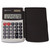 Convenient handheld calculator with protective hardcase. Impossible to lose--hard case flips away when in use. Dual solar/battery-powered for all lighting conditions. Large eight-digit display with three memory buttons. Power Source(s): Battery; Solar; Display Notation: Numeric; Number of Display Digits: 8; Memory: 4 Function/3-Key.