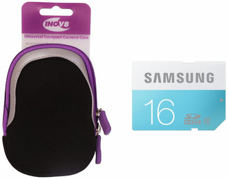 Compact Camera Kit with Neoprene Case and Samsung 16 GB Standard SDHC Class 6 Memory Card, Purple