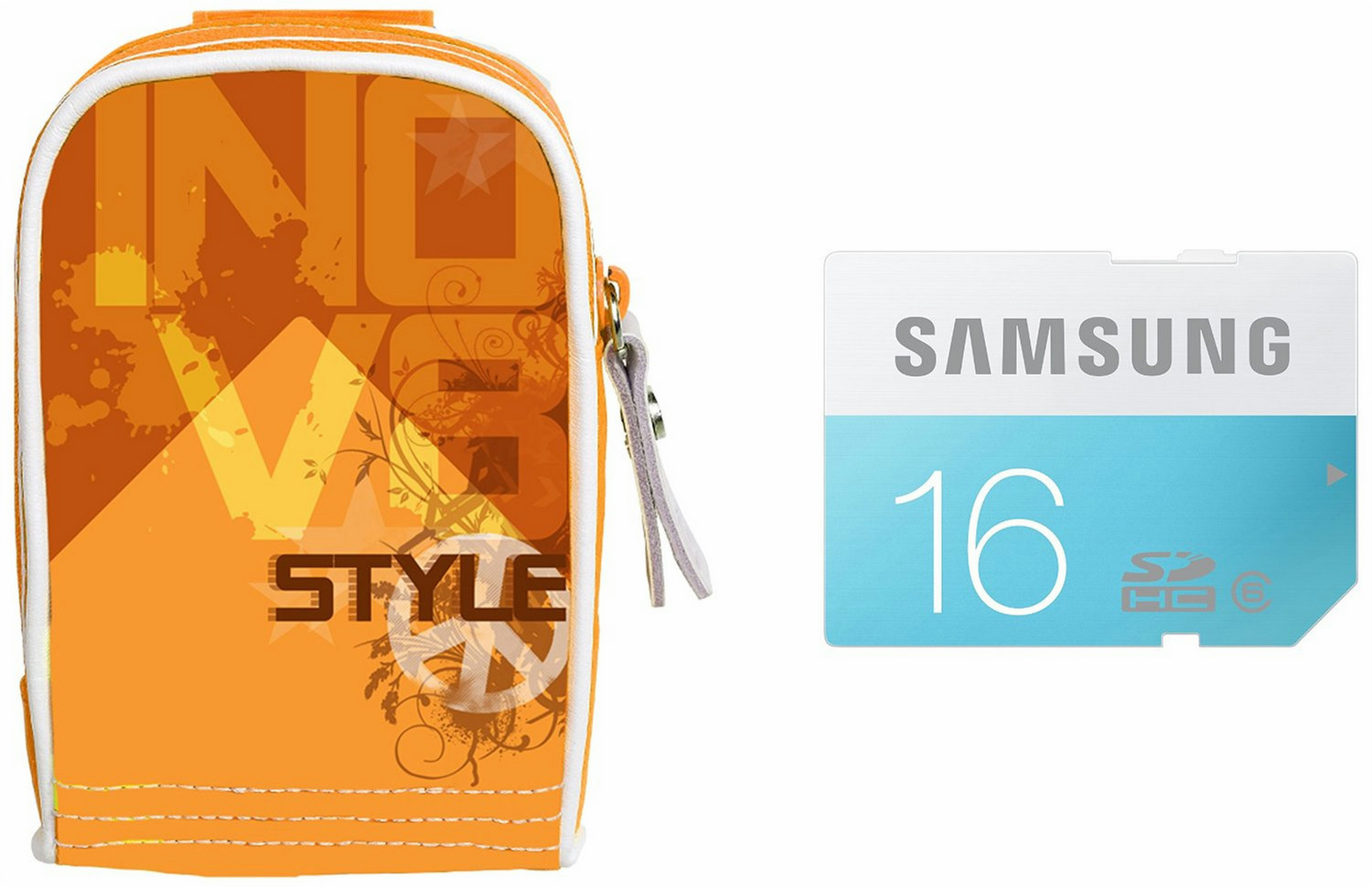 Compact Camera Kit with Stylish Case and Samsung 16 GB Standard SDHC Class 6 Memory Card, Orange