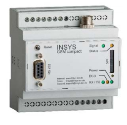 With the INSYS GSM compact, almost every PLC can be upgraded to a very affordable alarm indicator and remote controlling system for decentralized monitoring tasks. The connection to the PLC is made directly via the serial interface (RS232). Thedevice offers the opportunity to send alarm messages, also the remote controll of PLCs by SMS or DTMF.