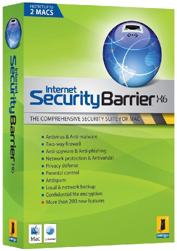 Internet Security Barrier X6, the latest version of Intego's security suite, includes more than 200 new features. With multiple threat-detection techniques, improved methods of detection, and a full range of defensive functions for malware and network protection, together with parental control, backup and antispam features, Internet Security Barrier X6 protects Macs from all known malware, network-based threats, and the many other security issues that affect Mac OS X.
