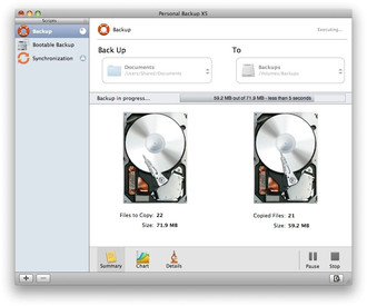 Personal Backup X5's multiple backups protect all your files from unexpected problems. To keep all your files safe, you need different kinds of backups. Back up files to external disks or optical media, create bootable backups of your entire Mac, and synchronize files from one folder or volume to another.