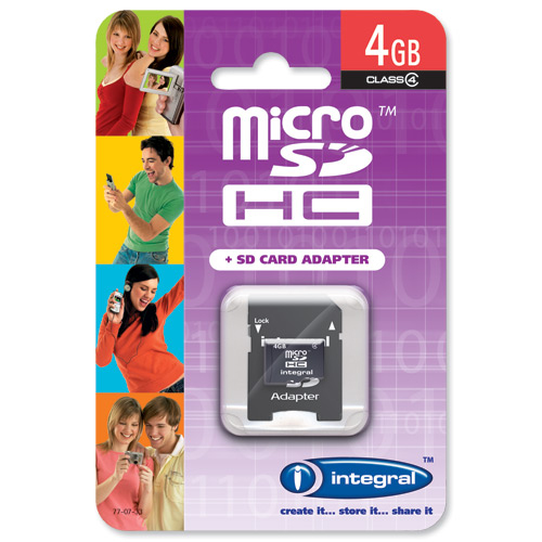 - Integral microSDHC has a high storage capacity (4GB upwards) and fast data transfer so that you can store your digital content such as MP3s, high-resolution photos, high definition videos and more without the restrictions of memory card size and data write-speeds of the past;