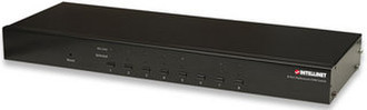 The INTELLINET NETWORK SOLUTIONS KVM Switch is an eight-port USB PS/2 rackmount device designed for computer/server management on a central console in corporate, factory and campus computing environments. It provides an on-screen display (OSD) for intuitive KVM switching operations, and its cascading feature can help upscale the number of connected computers. The switch offers a dedicated controller for each port to keep the mouse and keyboard alive even when the KVM switch is not powered on. Excellent video quality with minimal degradation is guaranteed even when daisy-chained up to 64 units. Perfect keyboard/mouse emulation provides high compatibility with PCs, servers and various operating systems.